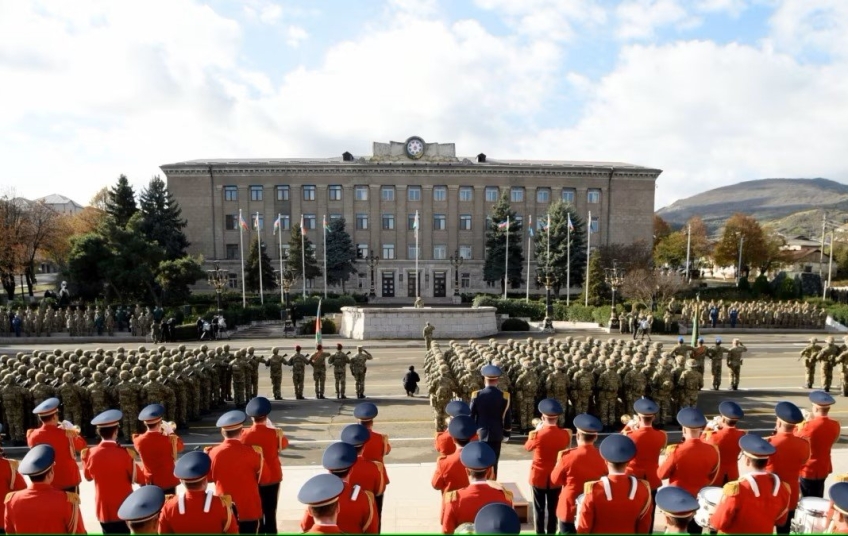 Ադրբեջանի նախագահը նոյեմբերի 8-ին հայաթափված Արցախի մայրաքաղաքի Ազատության հրապարակում անցկացրեց, այսպես կոչված, հաղթանակի զորահանդես, որին ներկա էին նաեւ կինը՝ Մեհրիբան Ալիեւան, եւ Հեյդար որդին: Սեպտեմբերի 20-ից Բաքվի վերահսկողության տակ անցած Ստեփանակերտում ուժի նման ցուցադրություն ձեռնարկելով՝ Ադրբեջանը, ըստ երեւույթին, փորձում է արցախահայության տունդարձի խնդրով շահագրգիռ երկրներին, այդ թվում՝առաջին հերթին Ռուսաստանին, հասկացնել, որ ամենեւին մտադրություն չունի ետ ընդունելու նախկին բնակիչներին: Այնինչ ՌԴ-ն դեռ հույսեր է փայփայում, որ մի քանի հազար հայ, այնուամենայնիվ, կվերադառնա Արցախ, ինչը թույլ կտա պահպանել իր ներկայությունը: