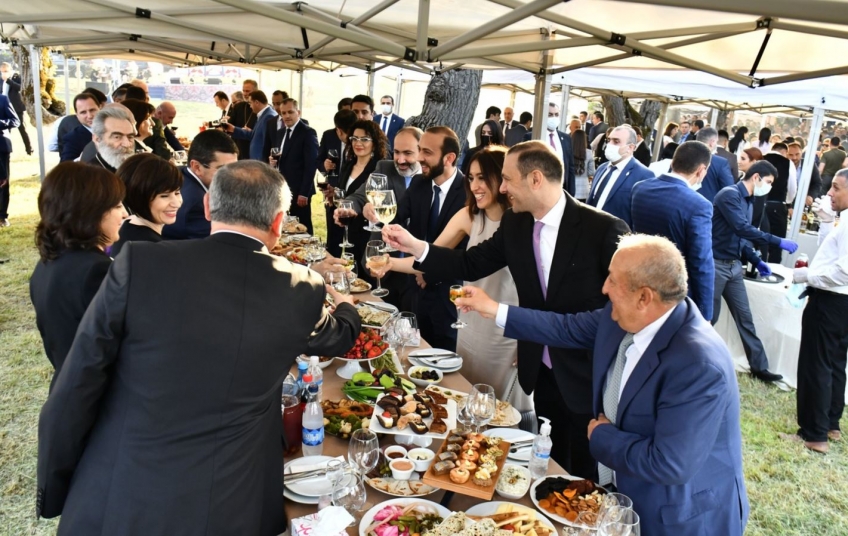 Prime Minister Nikol Pashinian and key members of his administration caused an uproar in Armenia after clearly failing to observe social distancing during a state banquet in Nagorno-Karabakh on Thursday. The open-air dinner party was held in the town of Shushi following the inauguration of Ara Harutiunian, Karabakh’s recently elected new president. Official photographs of the event showed Pashinian, Armenian parliament speaker Ararat Mirzoyan, their wives and dozens of other dignitaries standing tightly around tables loaded with various dishes and snacks. None of the guests wore gloves, let alone masks. The photos were widely circulated on social media, prompting criticism from not only opponents but also some supporters of the Armenian government. Some critics accused Pashinian of recklessness and hypocrisy. For more information read RFE/RL’s Armenian service (Azatutyun.am)