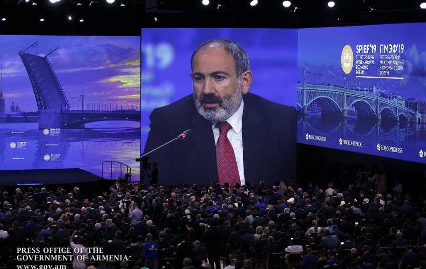 Վարչապետ Նիկոլ Փաշինյանը հունիսի 6-7-ը աշխատանքային այցով Ռուսաստանում էր, որտեղ մասնակցել է Սանկտ Պետերբուրգի միջազգային տնտեսական համաժողովին եւ հանդես եկել ելույթով: Այցի շրջանակում Նիկոլ Փաշինյանը հանդիպում է ունեցել Ռուսաստանի Դաշնության նախագահ Վլադիմիր Պուտինի հետ: Լրագրողների ներկայությամբ կարճատեւ զրույցից հետո երկու ղեկավարները հանդիպումը շարունակել են փակ դռների հետեւում. սա Փաշինյան-Պուտին արդեն 8-րդ հանդիպումն էր: Տեղի են ունեցել նաեւ վարչապետի հանդիպումներն այլ երկրների առաջնորդների, կառավարությունների ներկայացուցիչների, միջազգային կազմակերպությունների ղեկավարների, ինչպես նաեւ Սանկտ Պետերբուրգի հայ համայնքի ներկայացուցիչների հետ, որտեղ Նիկոլ Փաշինյանը մամլո ասուլիս է տվել: