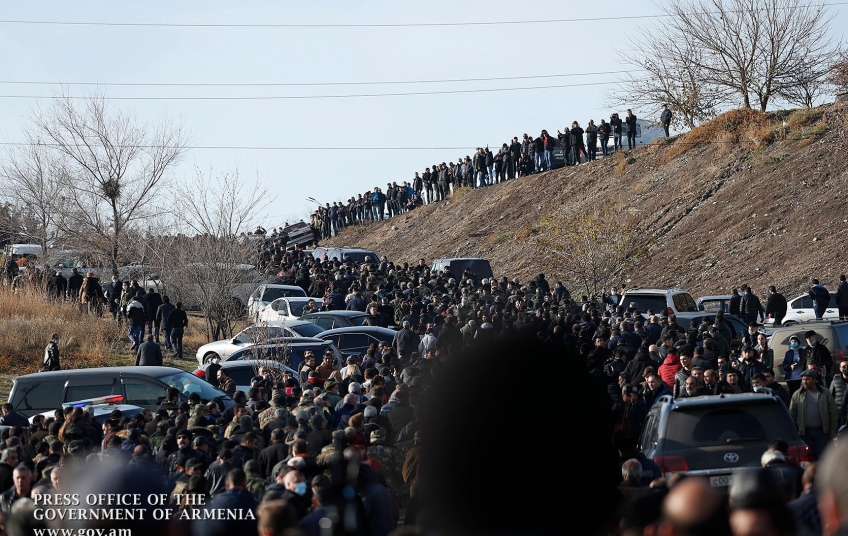 Դեկտեմբերի 19-ին Նիկոլ Փաշինյանի գլխավորությամբ նախաձեռնված սգո երթը վերածվեց ամոթալի ֆարսի: Կառավարության շենքից Փաշինյանի դուրս գալը հրապարակում հավաքվածները դիմավորեցին ծափահարություններով ու «Նիկո՛լ վարչապետ» բացականչություններով։ Ողջ երթի ընթացքում Փաշինյանը շրջապատված էր անվտանգության աննախադեպ մեծաթիվ աշխատակիցներով, իսկ երթի դիմացից գնում էին զրահապատ մեքենաներ: Մինչ երթը կհասներ Եռաբլուր, պանթեոն բերվեցին ոստիկանական ստորաբաժանումներ, այդ թվում` կարմիր բերետավորներ: Առավոտից այնտեղ գտնվող ազատամարտիկներն ու զոհվածների հարազատները Փաշինյանին դիմավորեցին «Նիկո՛լ դավաճան», «Նիկոլ-թո՛ւրք» վանկարկումներով: Նրա մուտքը Եռաբլուր արգելելու համար հավաքված քաղաքացիները, որոնց թվում կային նաեւ զոհերի հարազատներ, պատ էին կազմել՝ փորձելով թույլ չտալ Փաշինյանին առաջ շարժվել, սակայն ոստիկանները հրմշտելով հեռացրին նրանց վարչապետի ճանապարհից։