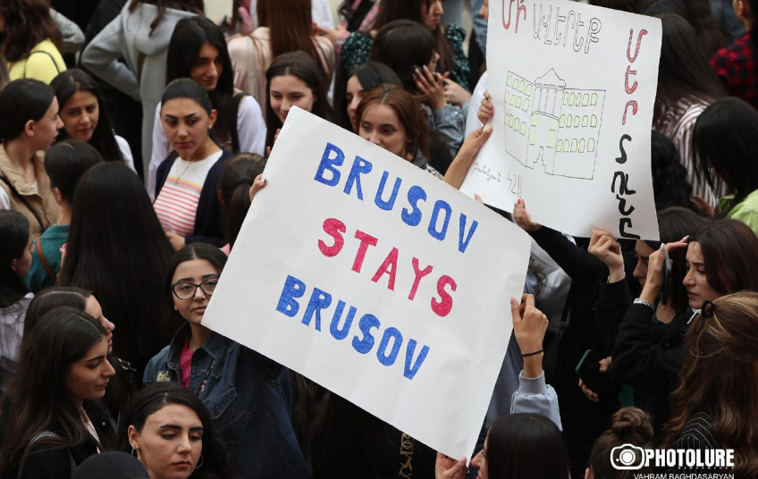 Շաբաթվա ընթացքում Բրյուսովի անվան լեզվաբանական համալսարանի ուսանողները, դասախոսները քայլերթեր ու բողոքի այլ գործողություններ էին իրականացնում Երեւանի փողոցներում եւ Հանրապետության հրապարակում՝ իրենց դժգոհությունը հայտնելով մի քանի բուհեր միավորելու՝ ՀՀ կառավարության որոշման դեմ։ «Բրյուսովի ուսանողը հաղթելու է», «Պահանջում ենք արդարություն», «Մենք չենք ձուլվելու»՝ վանկարկում էին ցուցարարները։ Բանասիրական գիտությունների թեկնածու, դոցենտ Հրաչիկ Հակոբջանյանը լրագրողների հետ զրույցում նկատում է, որ իրենց բուհը բարձր նշաձող է համալսարանական շարժման մեջ։ «Բրյուսովը բենդ է, եւ բրենդ է նաեւ համալսարանական շարժման համար»,- ասում է Հակոբջանյանը՝ հավելելով, որ համալսարանի կրթության միջավայրը բարեբեր ու նորարար է, այն չի կարելի խաթարել: Օտար լեզուների դասագրքերի 80-90 տոկոսի հեղինակները, ըստ նրա, Բրյուսովի դասախոսներն են։